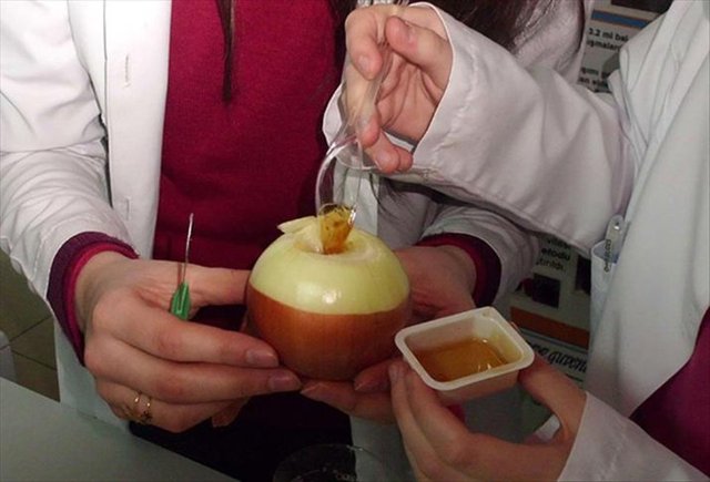 - Üzerine kestiğimiz soğanı kapak olarak koyduktan sonra 2-3 saat bekletilir yavaş yavaş sulanarak bardağa birikecek.