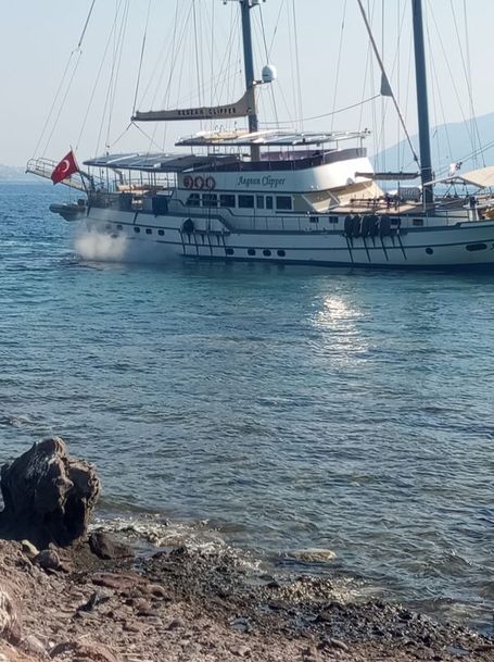 Bodrum'da 41 metre uzunluğundaki yelkenli tekne, Haremtan Koyu açıklarında henüz belirlenemeyen nedenle karaya oturdu.