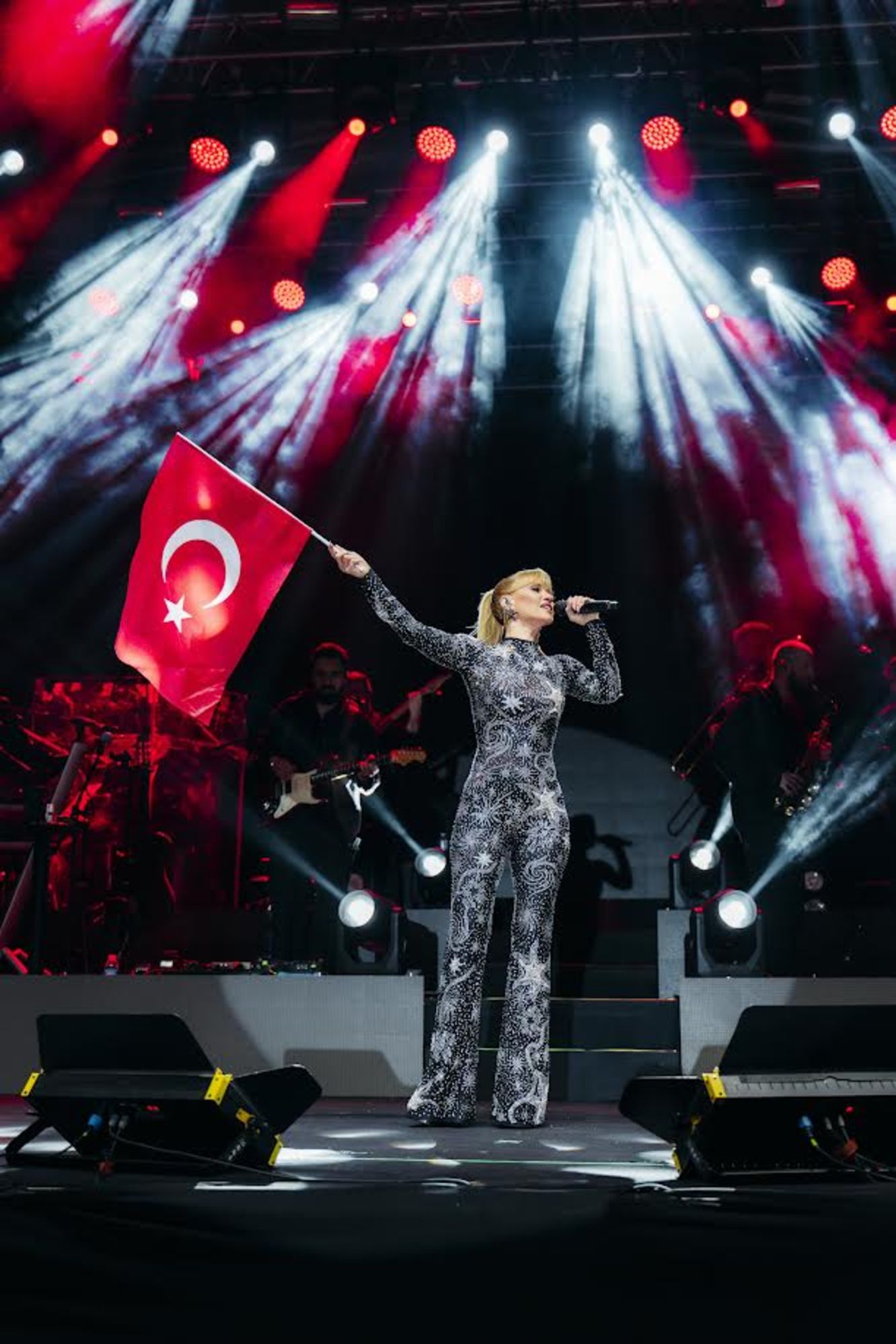 Emre Altuğ, 29 Ekim Cumhuriyet Bayramı kutlamaları kapsamında Antalya - Kemer'de sahne aldı. Geceye özel hazırlanan ay-yıldızlı ceketiyle dikkat çeken Altuğ, Cumhuriyet Bayramı'nı alanı dolduran binlerce kişiyle beraber kutladı.